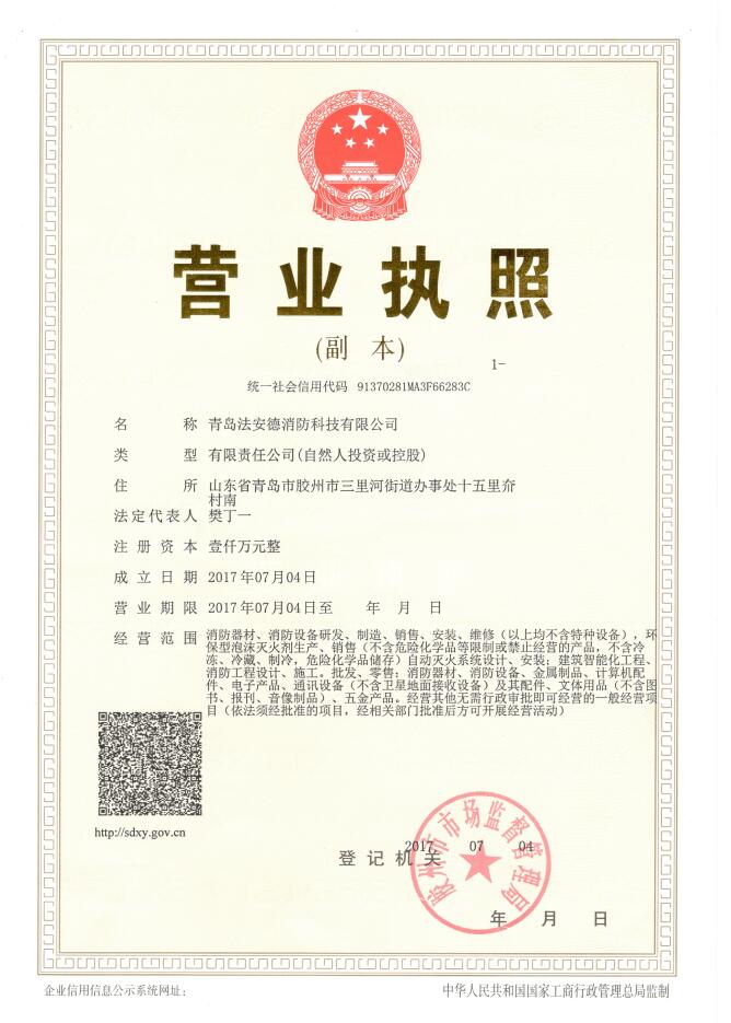青岛U8国际消防科技有限公司,总部位于美丽的滨海城市-青岛,公司生产基地位于青岛市胶州市,公司办公地址位于青岛市市北区小港一路6号-名城荟。是一家专业从事消防产品科研、开发、设计、生产、销售运营服务于一体的现代化公司。公司主要生产、销售:压力式比例混合装置、泡沫灭火剂。通过了公安部消防产品合格评定中心认证,取得了消防产品认证证书。